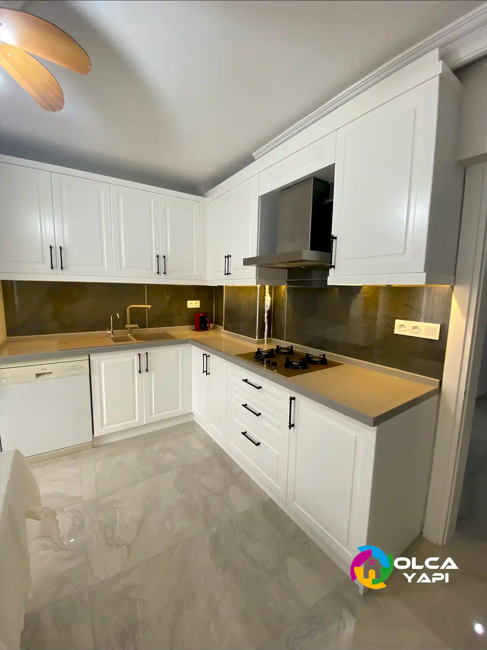 Bursa Fethiye Mahallesi’nde Nuh Bey’in dairesinde gerçekleştirdiğimiz kapsamlı tadilat ile modern ve şık bir yaşam alanı oluşturduk! Mutfak dolabından banyo seramiklerine kadar birçok detayı özenle tasarladık.