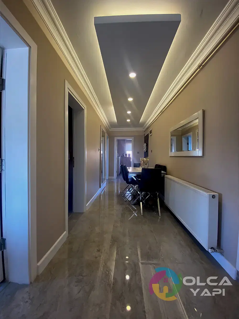Proje sırasında mevcut mutfak dolapları, kemerler, pencereler ve banyoda gerekli kırım işlemleri yapıldı. Kara sıva işlemleri gerçekleştirildi. Tüm tesisatlar yenilendi ve montajları tamamlandı.